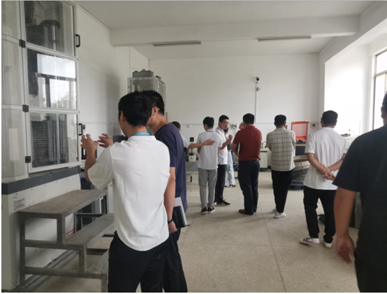 2020年8月21日上午,贵州中建建筑科研设计院有限公司潘院长及各分院(部门)负责人一行十四人到公司调研交流,首先公司及省建科院双方对各自公司的基本情况进行了介绍,然后考察团及公司领导进行了交流座谈,交流主要围绕公司前期的发展、后期规划目标、对贵州检测业务前景和规范检测市场的看法、检测人员的培训、新项目的立项流程等方面进行,座谈交流后考察团一行参观了公司试验室。