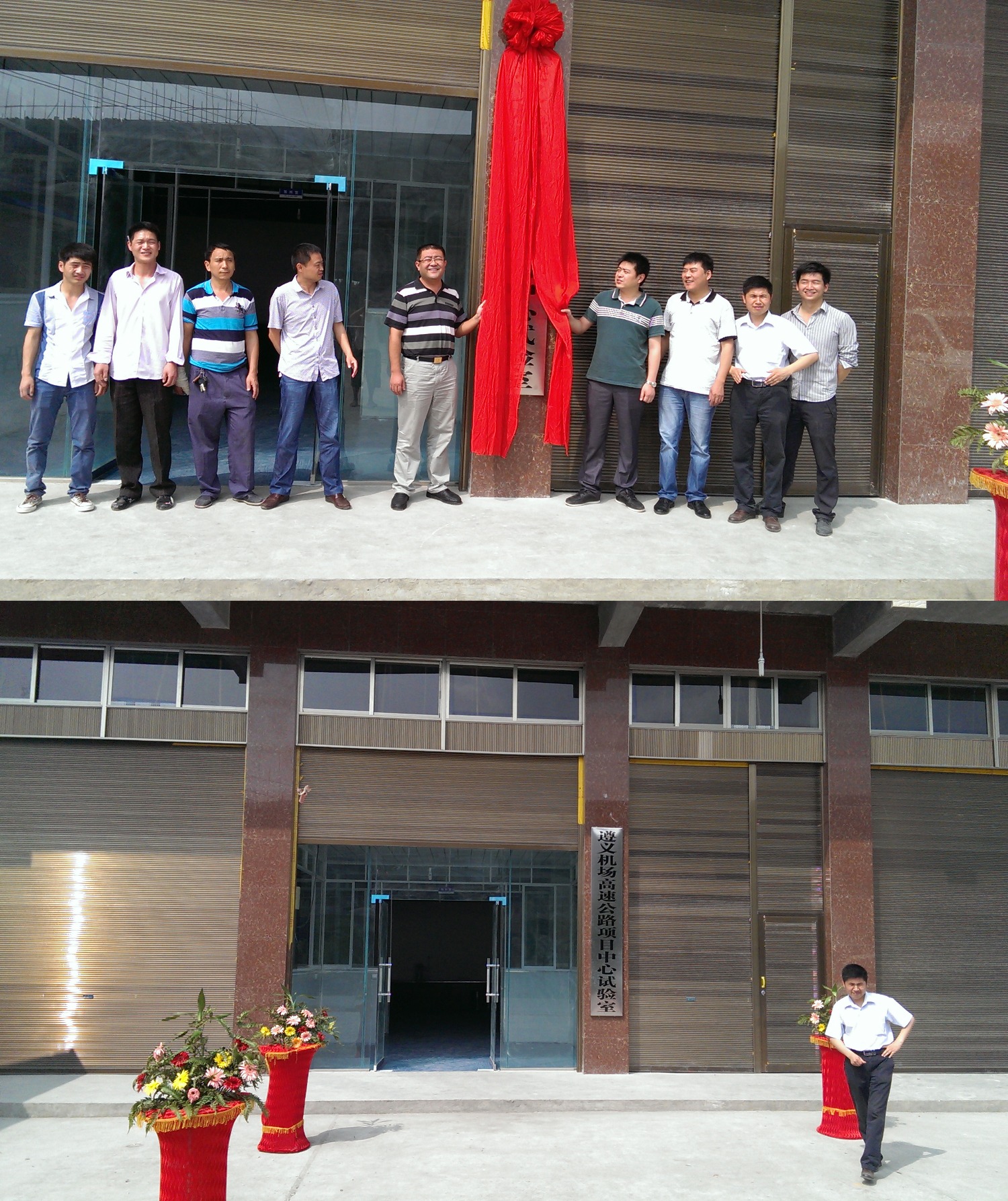 因公司发展需要,受中国中铁南方投资公司遵义分公司委托,我公司(永兴建设工程质量检测有限公司)与中铁五局测绘试验中心(贵州铁建工程质量检测咨询有限公司)共同组建遵义机场高速公路项目中心试验室。2013年7月12日,中铁南方遵义投资有限公司副总经理刘鹏程、总工程师姬繁与贵阳永兴建设工程质量检测有限公司董事长杨兴林等领导一同出席了揭牌仪式。