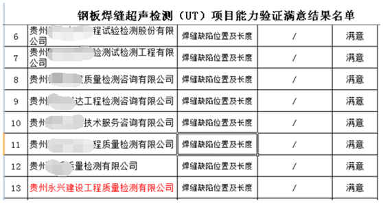 近日,公司参加了省市场监管局组织开展的“钢板焊缝超声检测、粉煤灰性能检测”检验检测机构能力验证工作,公司本部、贵安和盘州分公司均获得“满意”结果。