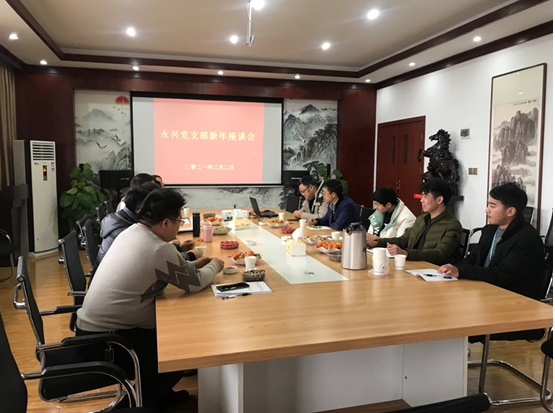 2021年2月2日下午永兴党支部组织支部全体党员和积极分子开展新年座谈会主题党日活动,座谈会主题内容为回顾总结和今年支部建设的交流。