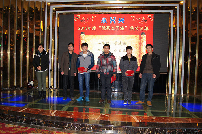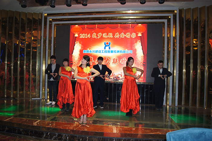 2014年元旦前后,永兴建设工程质量检测有限公司举行了“2014筑梦远航,共绘精彩”为主题的2013年年终工作总结表彰大会暨年终联欢会,会上,永兴检测各部门负责人汇报了一年的工作,会议评选并表彰了“优秀实习生”、“十佳员工”、“先进集体”等先进集体和个人,并对2014年工作做了简单的规划。