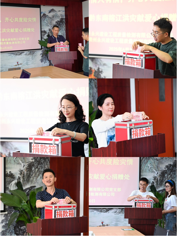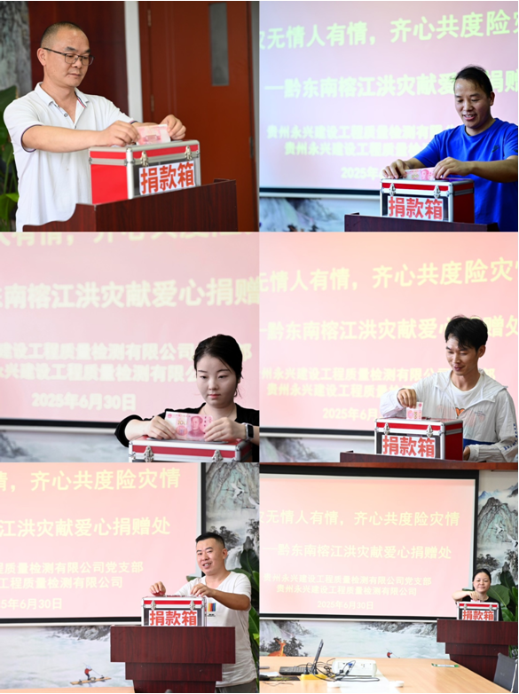 面对汛情,公司组织员工捐款捐物,发扬中华民族“一方有难,八方支援”的传统美德,以实际行动为灾区防汛救灾奉献自己的一份爱心,帮助灾区群众尽快恢复正常生产生活。